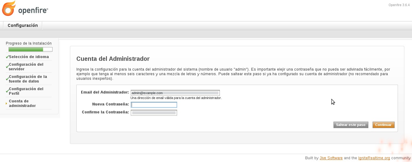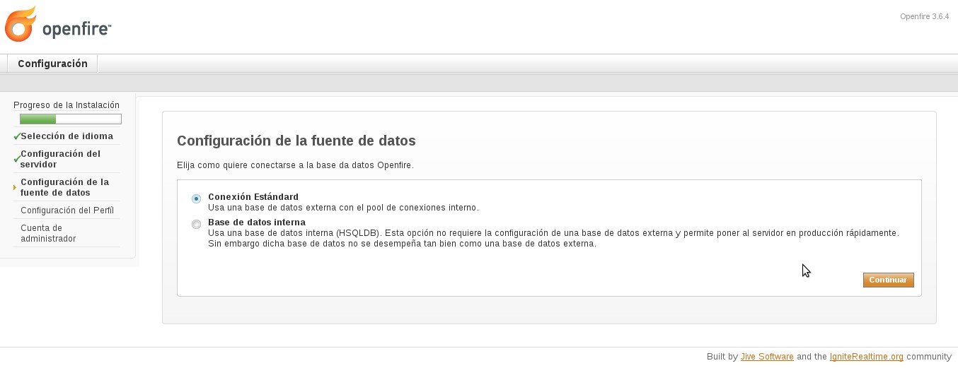 Seguimos con la instalacion de la base de datos openfire