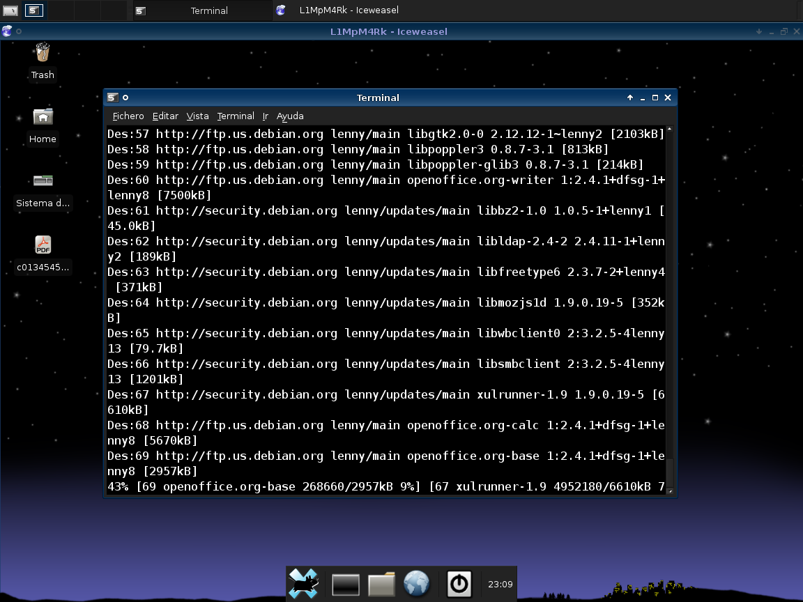 También les presento a mi Debian Lenny con escritorio XFCE, muy pero muy ligero