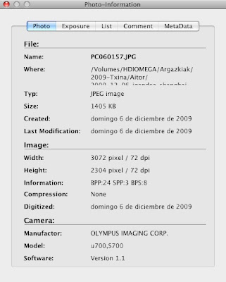Además junto con la foto viajan datos como: la cámara utilizada, la apertura, la fecha y hora, el programa de edición utilizado, la fecha y hora de edición, etc. etc.