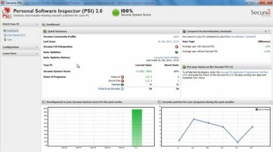 Secunia Personal Software Inspector detecta automáticamente programas inseguros de terceros y plugins, como Adobe Flash Player y Adobe Reader, Java, Skype y Firefox.