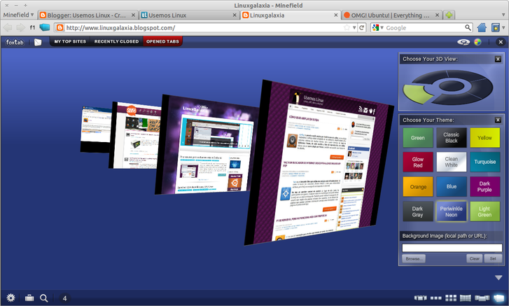 FoxTab es una extensión para Firefox que permite navegar por las pestañas de una manera diferente, añade vistas previas en tiempo real y permite configurar los efectos 3D que utiliza como transisiones, algo muy útil sobre todo para quienes abren varias pestañas a la vez. |