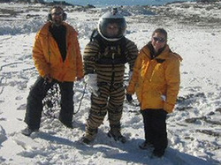 El traje, cuyo diseño costó alrededor de 100 mil dólares, fue creado hace cuatro años por el ingeniero argentino Pablo de León, director del Laboratorio de Vuelos Espaciales de la Universidad de Dakota del Norte (EE.UU.), quien fue el encargado de comenzar a ponerlo en práctica este lunes en la base argentina Marambio.