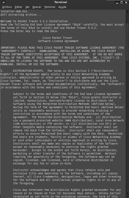 ./nombre del archivo, presionamos enter, nos debería de aparecer lo siguiente, en donde solo debemos aceptar la licencia: