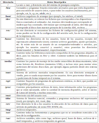 A continuación una breve descripción de los directorios que conforman el Sistema de Archivos de Linux.