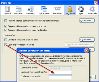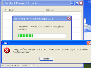 Dicha ventana nos esta avisando que el proceso de extracción de credenciales fallo, a causa que el usuario de Firefox esta haciendo uso de una “master password“. La “master password” es una contraseña que se solicita cada vez que se extrae información de nuestro perfil. Por lo tanto, habilitemos esta opción de Firefox: