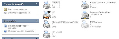 Esta pequeña guía nos servirá cuando queramos imprimir desde un ordenador de la subred que no tiene la impresora conectada(en este caso se trata de Windows 7),y tenemos la impresora conectada en otro ordenador de la red. Por supuesto que hemos de tenerla compartida desde el pc anfitrion (el pc que tiene instalada y compartida la impresora, en este caso se trata de un XP)
