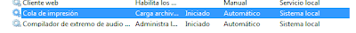 Buscamos el servicio adecuado en este caso, que es la Cola de Impresión (proceso spoolsv.exe) y lo activamos. Podemos dejarlo en Automático si lo necesitamos permanentemente. De esta forma no tendremos que volver a configurarlo, pero el proceso se hallará siempre activo, escuchando, incluso cuando no estemos imprimiendo ningún documento.