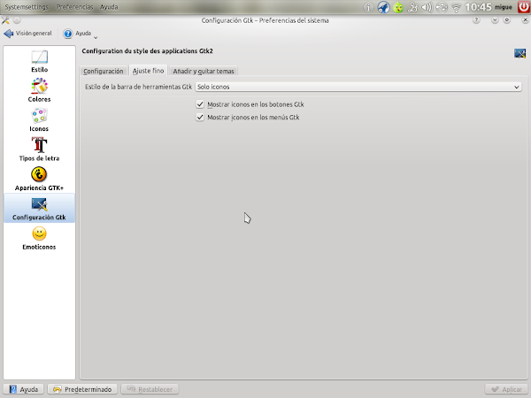 – Mostrar o no íconos en las barras y menús de las aplicaciones Gtk.