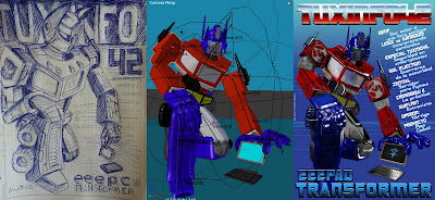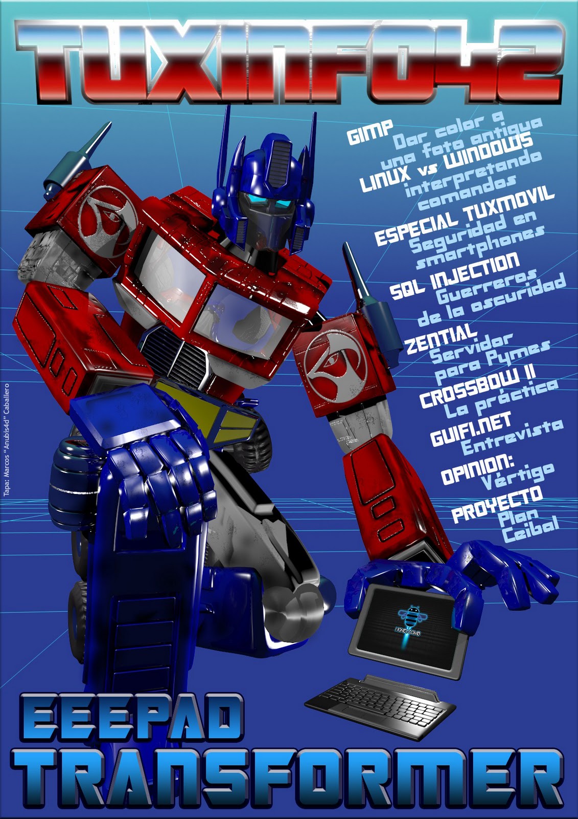 Como no podía esencia de otra manera, un titular como eeePad Transformer, SI O SI debía tener al viejo Optimus Prime. Cada tapa de Tuxinfo ha buscado mejorar la anterior, pero no había hecho nada completamente en 3D para la revista hasta el momento, o al menos no con tanta complejidad.