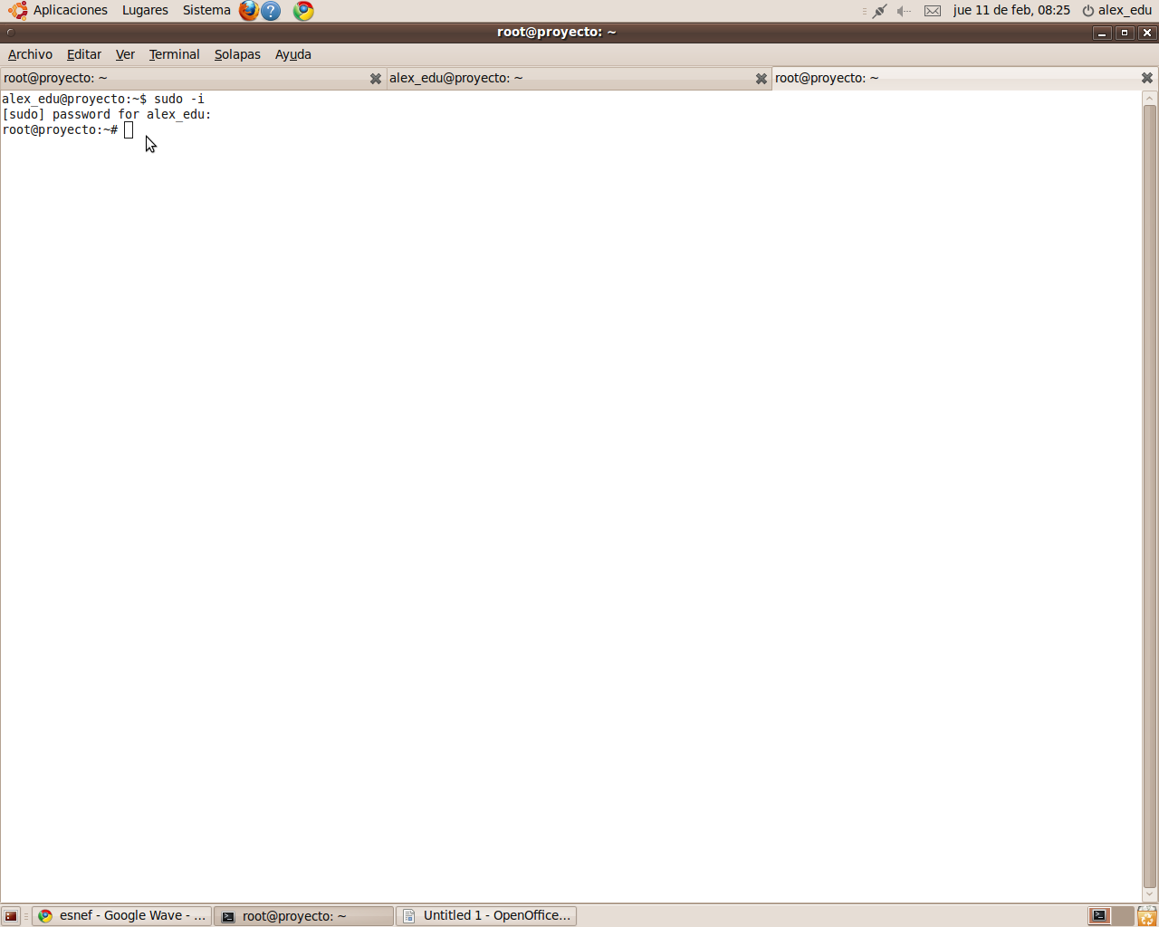 Lo primero que vamos a hacer es introducirnos como superusuarios introduciendo el