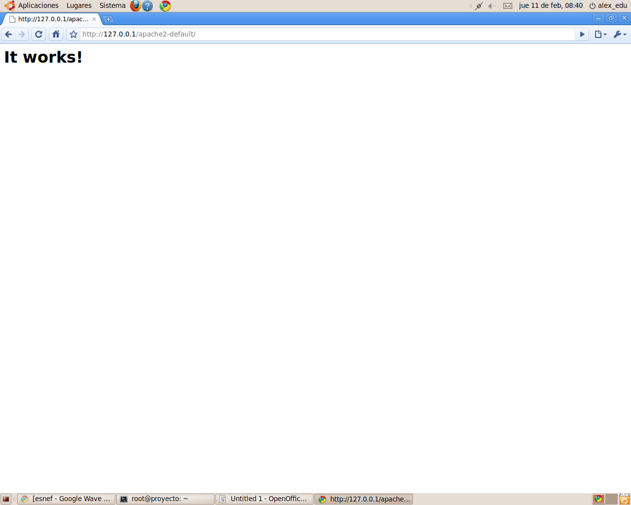 Podremos en el explorador la URL http://127.0.0.1 (esta es la dirección local host con la que podemos acceder a nuestro propio servidor por el puerto 80).