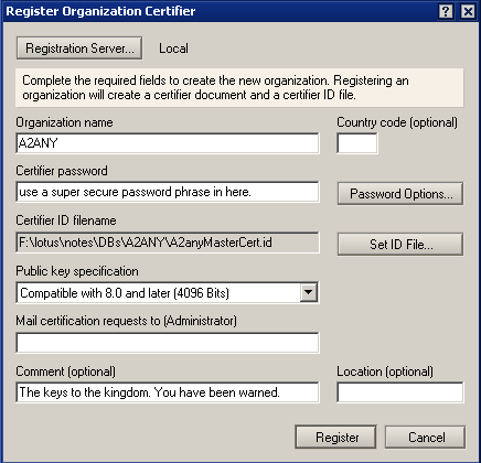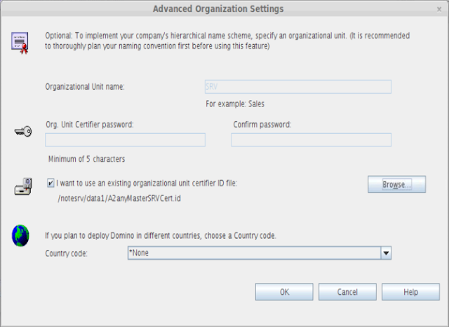 Por suerte algunos inteligente bloke IBM decidió que si se crea un nuevo dominio con un pre-creado O y OU cert entonces el servidor inherente esta unidad organizativa. Clever, sí, pero no es muy claro.